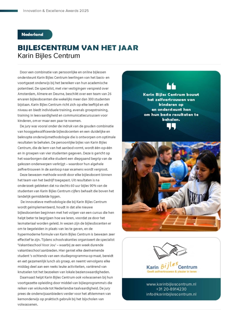 Karin en Peter waren zeer trots om namens het hele team van Karin Bijles Centrum deze award in ontvangst te nemen: